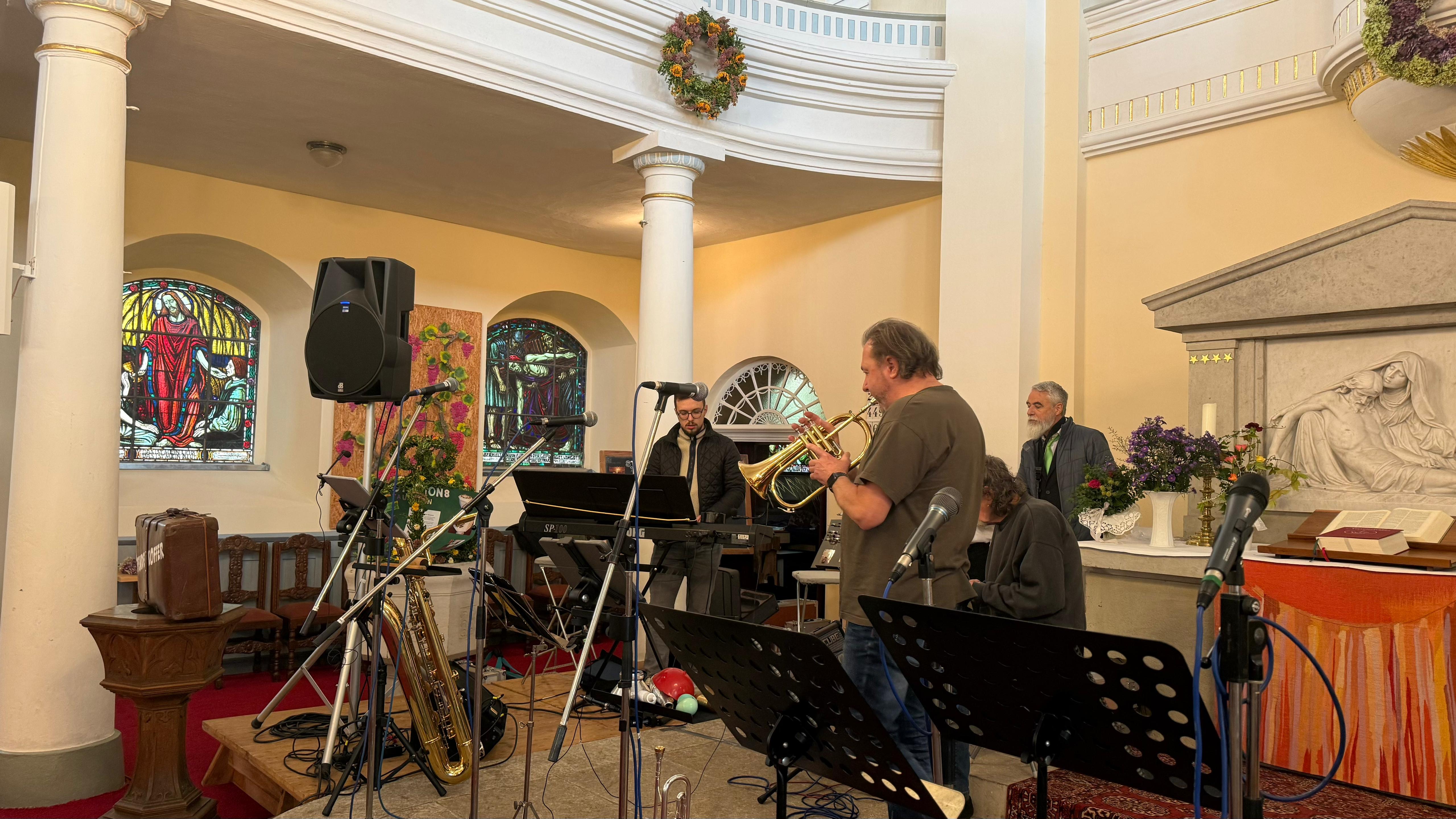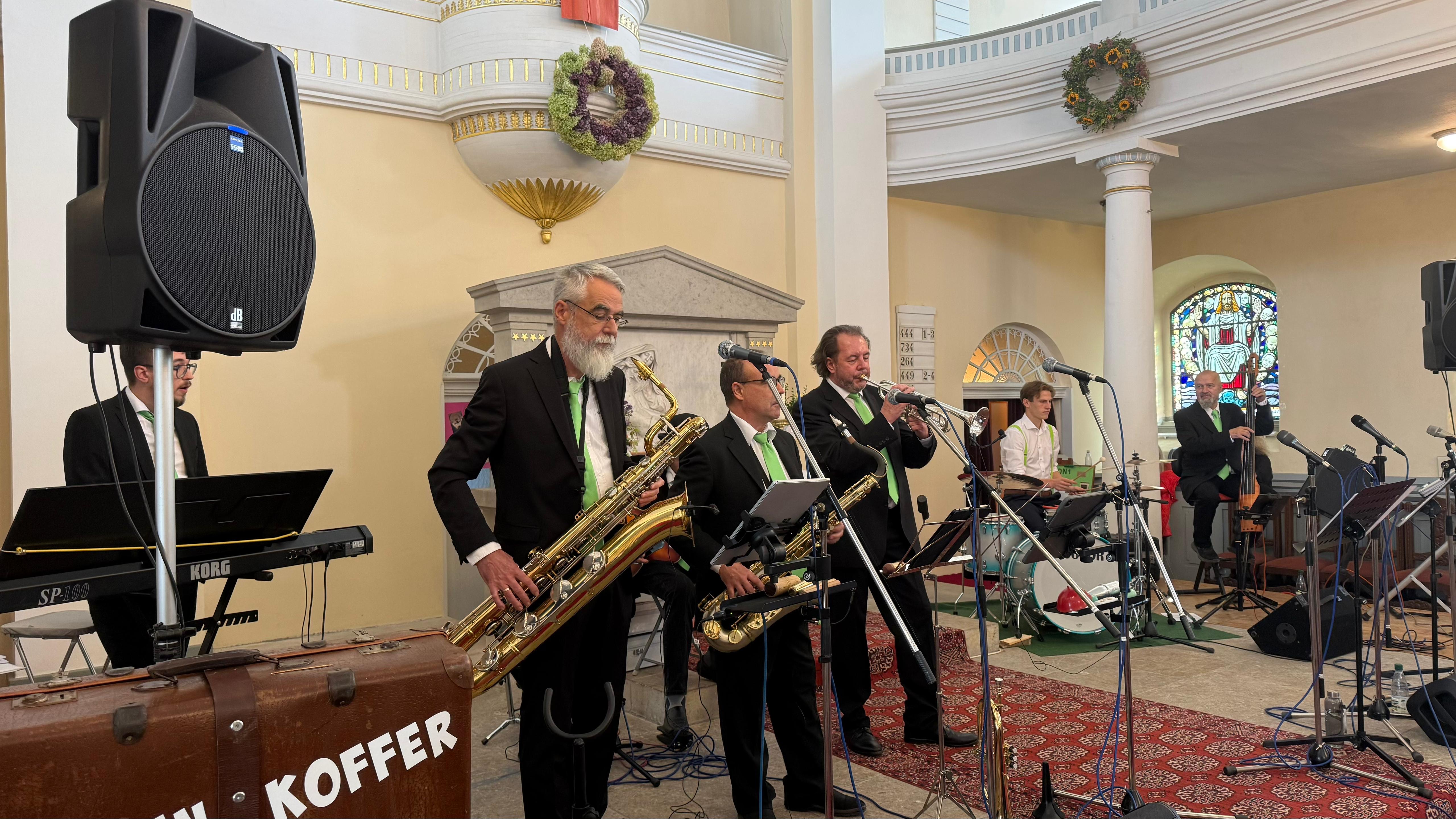 Dabei trafen wir, wie es der Zufall wollte, auf Andreas Richter, der uns viertelnach7 vorstellte und sofort sprang der Funke über, so dass wir seitdem einige Veranstaltungen zusammen mit der Jazzband umrahmten.