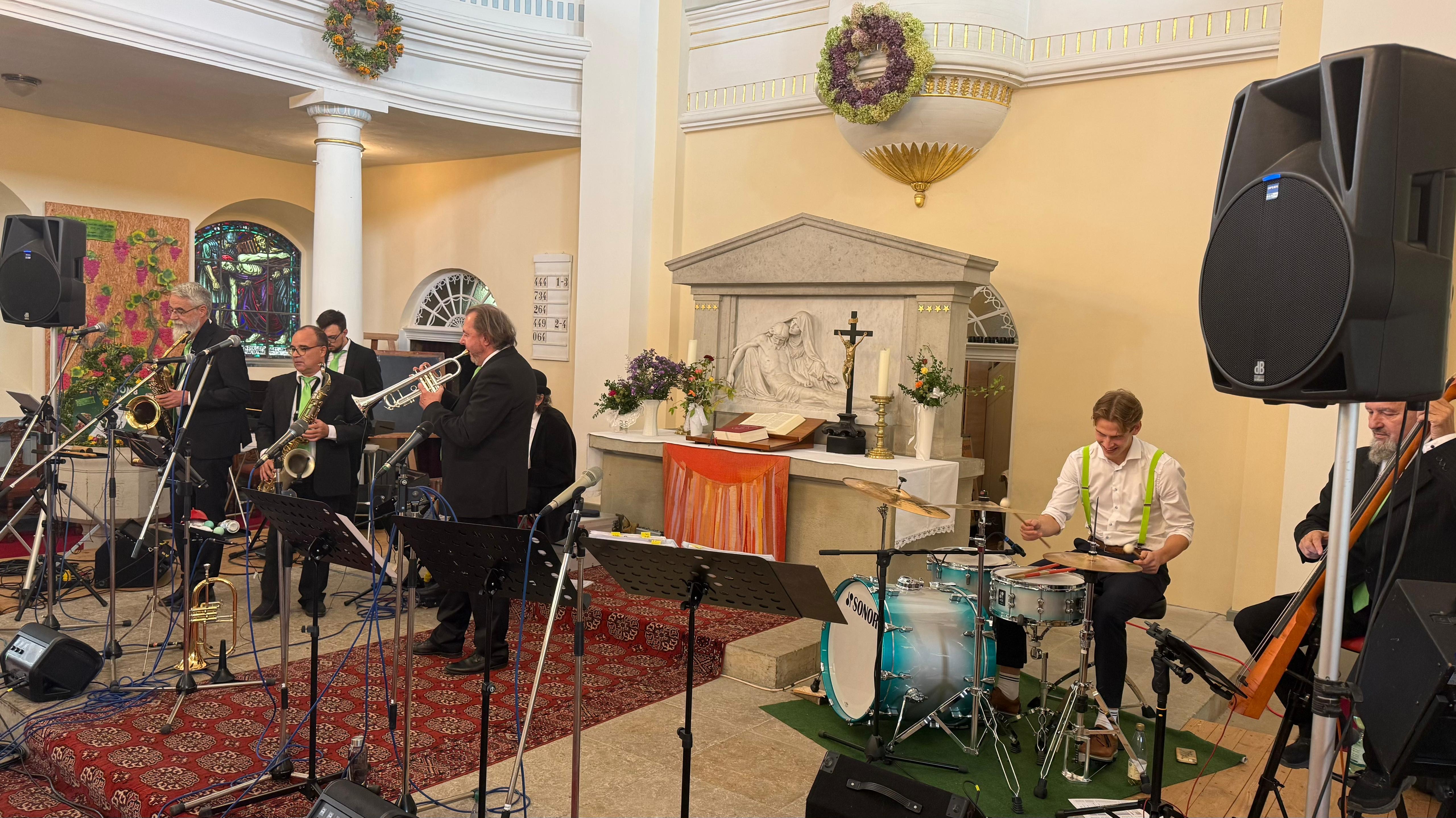 Da wir doch ein recht großes Orchester sind - und da kommt auch noch ein Tontechniker dazu! - ist es manchmal doch recht schwierig, einen gemeinsamen Auftrittstermin zu finden.Wie schon gesagt, die meisten von uns gehen einer geregelten Arbeit nach und die Musik ist unsere Freizeitbeschäftigung!