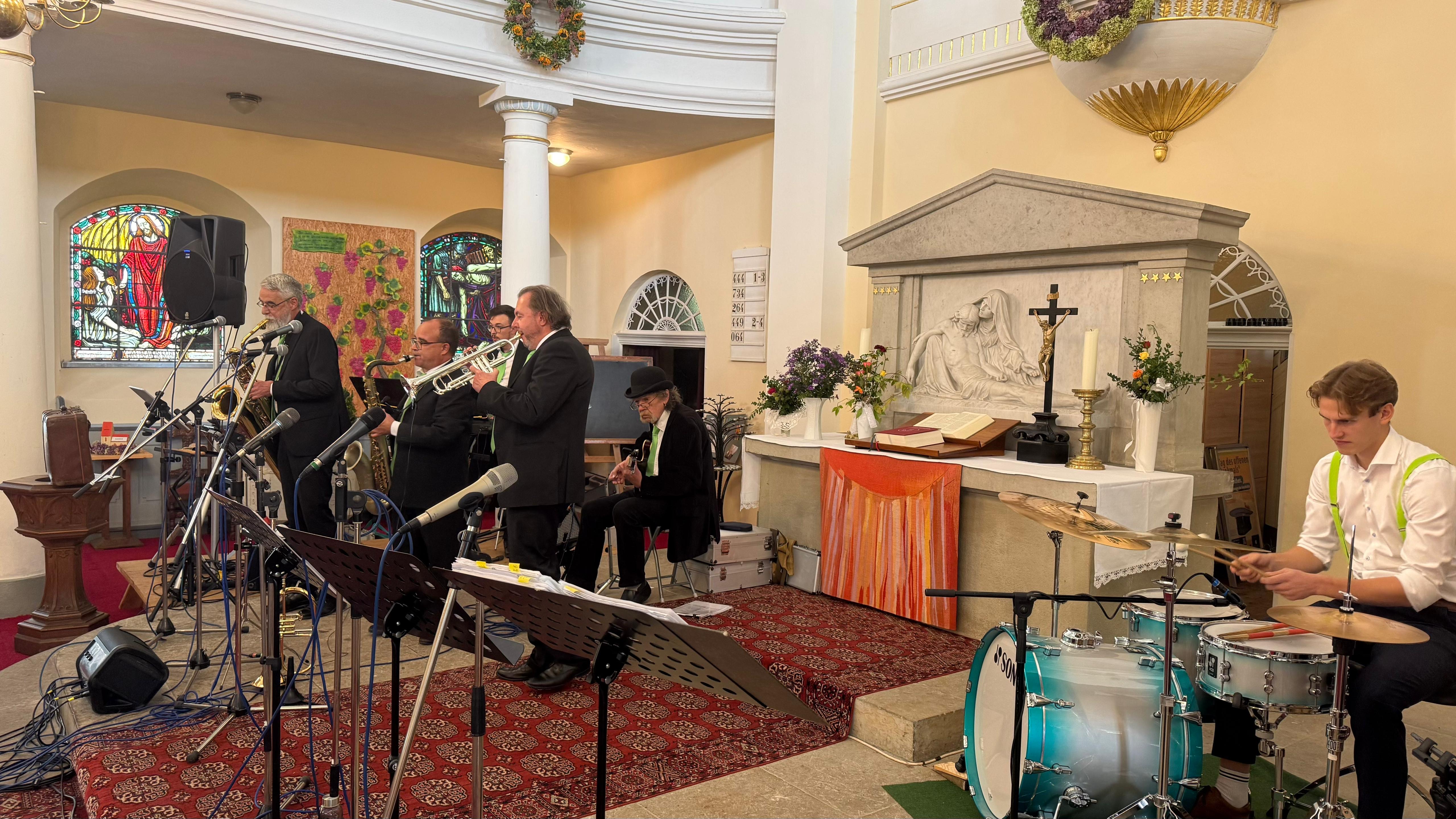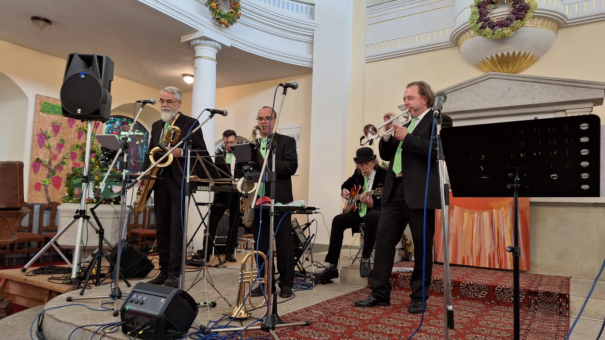 Dabei trafen wir, wie es der Zufall wollte, auf Andreas Richter, der uns viertelnach7 vorstellte und sofort sprang der Funke über, so dass wir seitdem einige Veranstaltungen zusammen mit der Jazzband umrahmten.